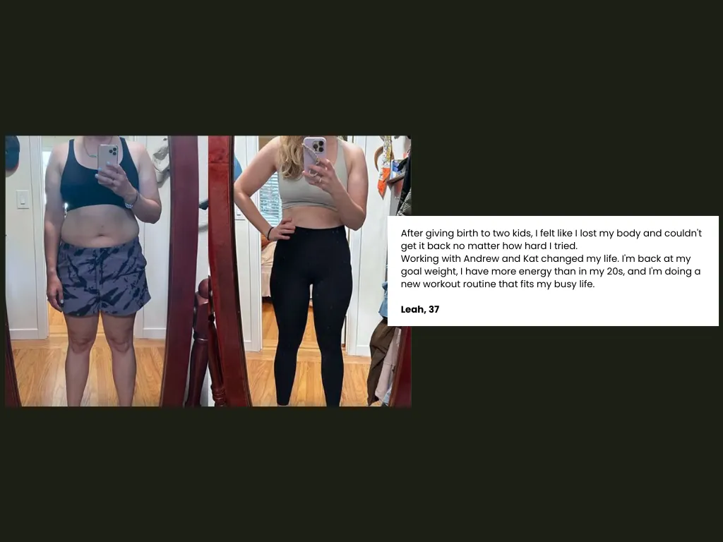 We recommend booking a free call to talk through your specific challenges to see if and how we may be different. The truth is, the information you need is out there. For free. The hard part is doing it consistently and getting it to stick long term. We are built from the ground specifically for full-time workers and parents, so we tailor the advice to your specific needs to make sure the habits stick.